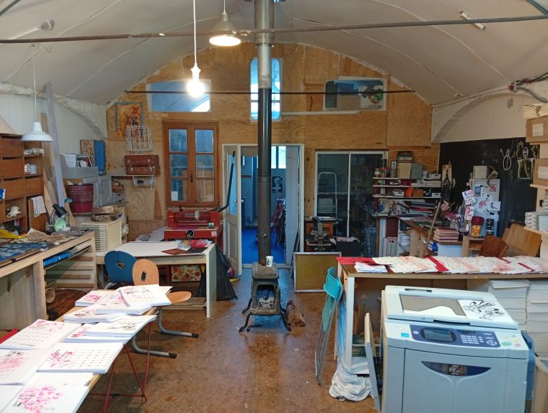 • Il est également équipé en sérigraphie papier, typographie, reliure … Plusieurs collaborations ont vu le jour sous la forme d’affiches, de refonte de logo, de création de visuel, de fanzines, d’affiches, de cartes etc …